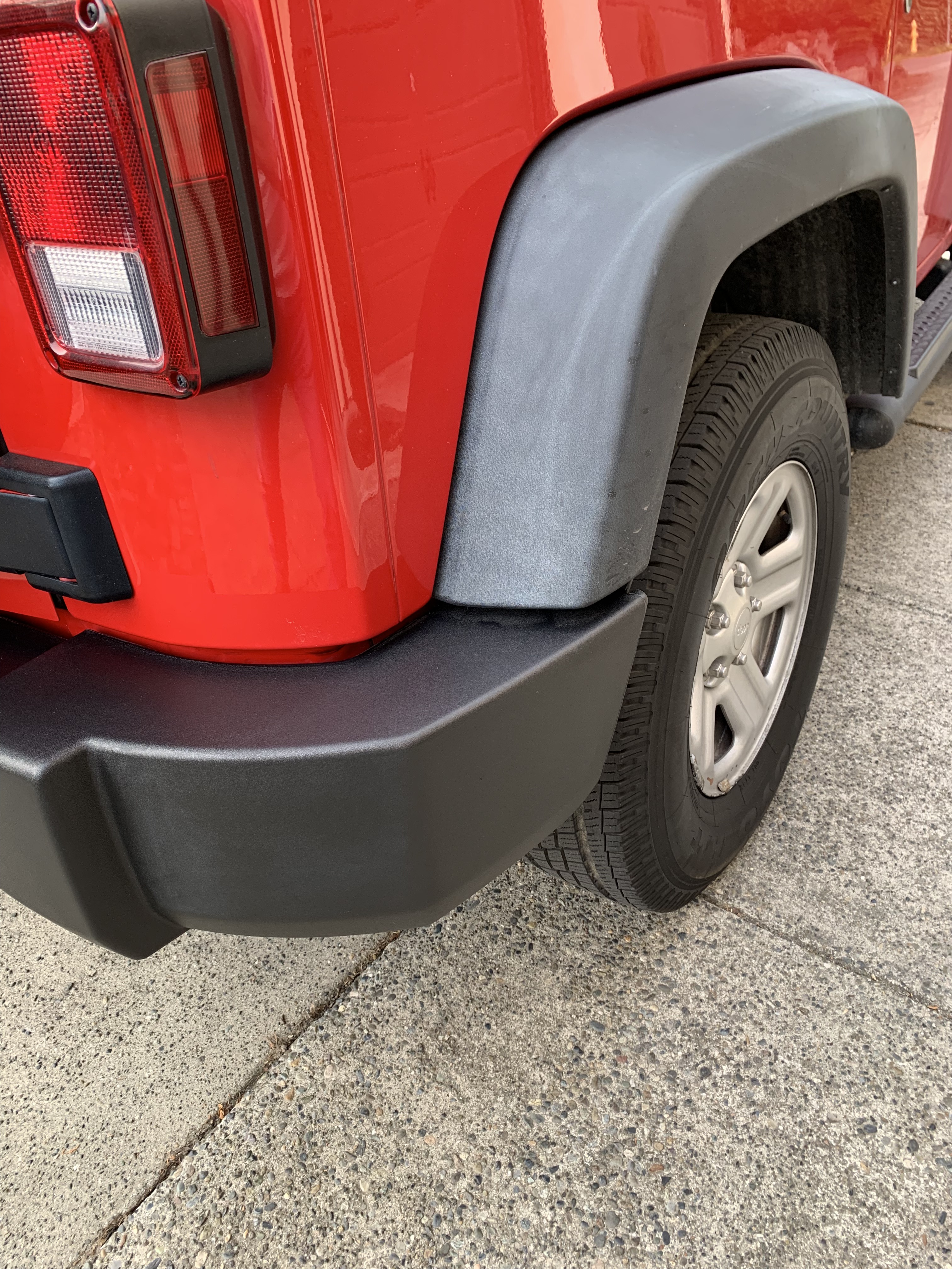 BAD decision – The fenders and most of the black trim was pretty faded so I ordered some Omix-ADA OEM style fender flares to replace them. Within a year, I upgraded to Poison Spyder Aluminum Flares. (more on that later) I had no problem with the Omix fenders themselves, they are great quality and easy to install but I could have saved some money and lived with the deteriorated plastic ones until I popped for the metal ones.