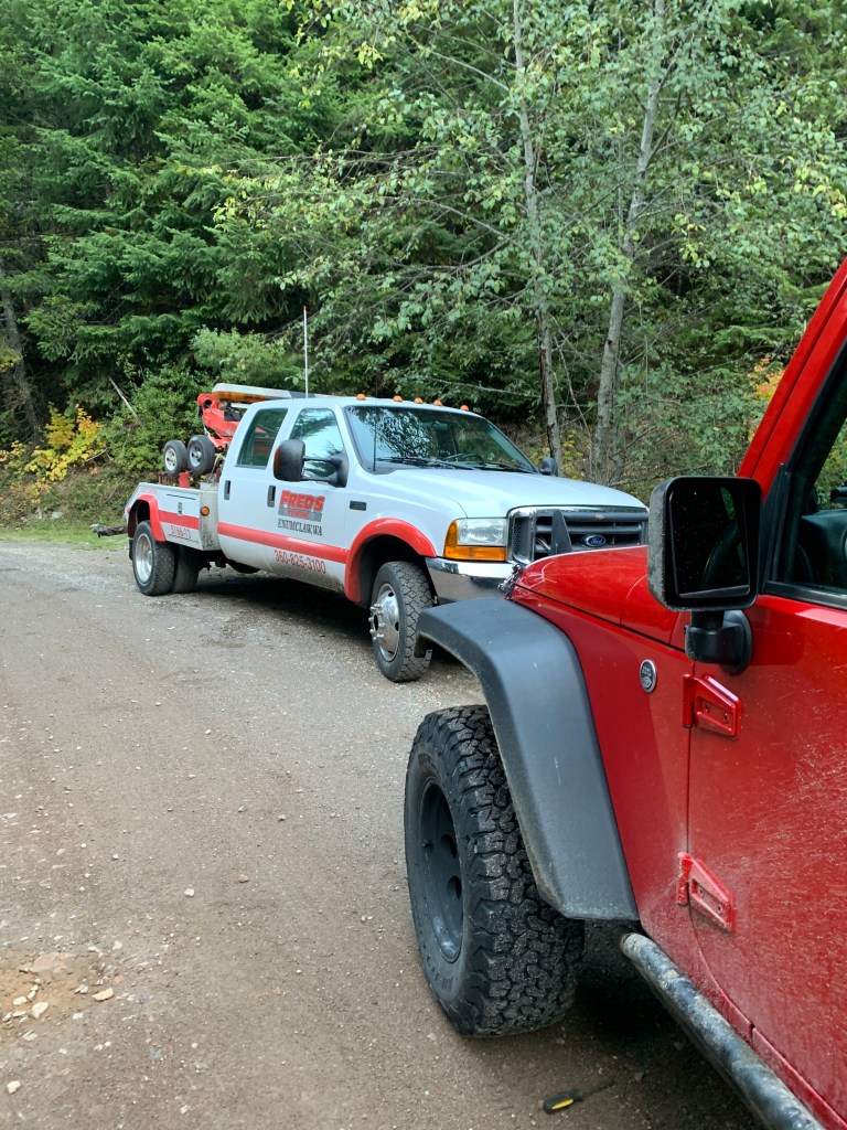 The breakdown was caused by a transfer case shift cable bushing, the little plastic guy on the left. Well, now I carry extras of these guys with me as they are a known weak link on JK’s and a super easy repair as long as you have the $5 part.