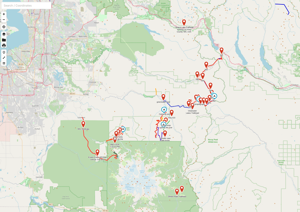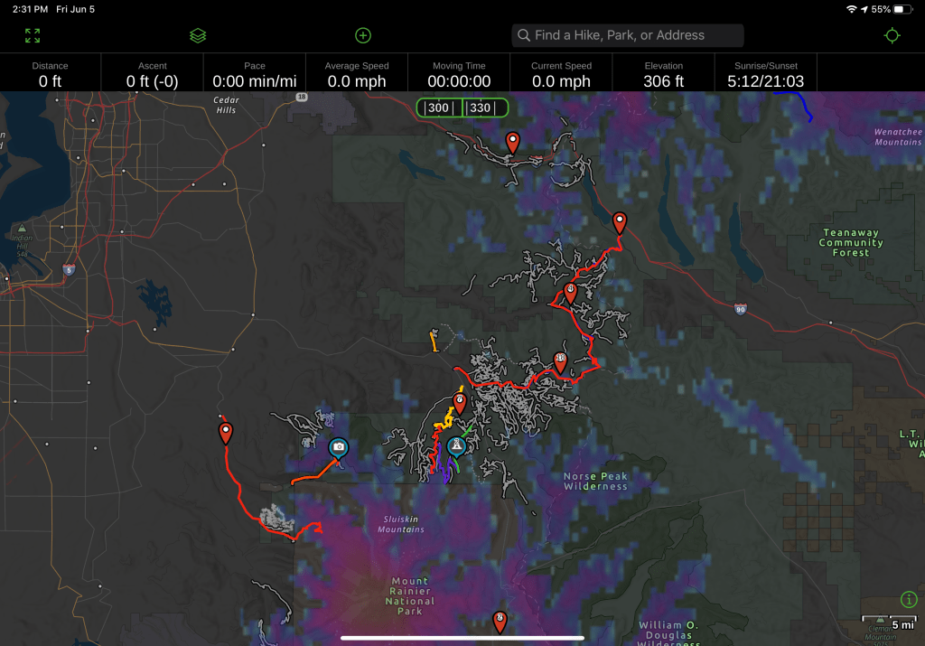 I can’t say enough about Gaia. I have a premium membership that allows you use of their full map catalog and the ability to customize maps. You can check it out with access to the Gaia Topo map, plan, navigate and record your trips all for free. The part I like the best is that you can access Gaia via their web site or the app allowing you to do planning from home. It’s important to download maps of the areas you are going to visit onto your phone or iPad before you go. It’s a great system as you can download only what you will need and offload them when you’re done saving storage space on your device. Here’s what the web based map looks like and below it is the iPad App. I’ve got some different map layers applied but you can see how the saved trip routes and waypoints have been synced between iPad and web. I highly recommend this as your main navigation tool. I do use other resources for planning but I’ll save that for a time if I get enough requests about route/travel planning. I may touch on this app again on a dedicated page as it probably deserves a whole discussion around what it can do for you.