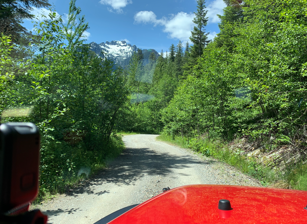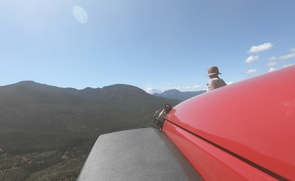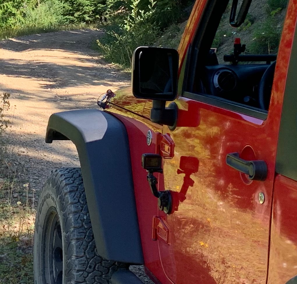 Here’s a shot from the GoPro on the suction mount mounted just in front of the Jeep Trail Rated badge.