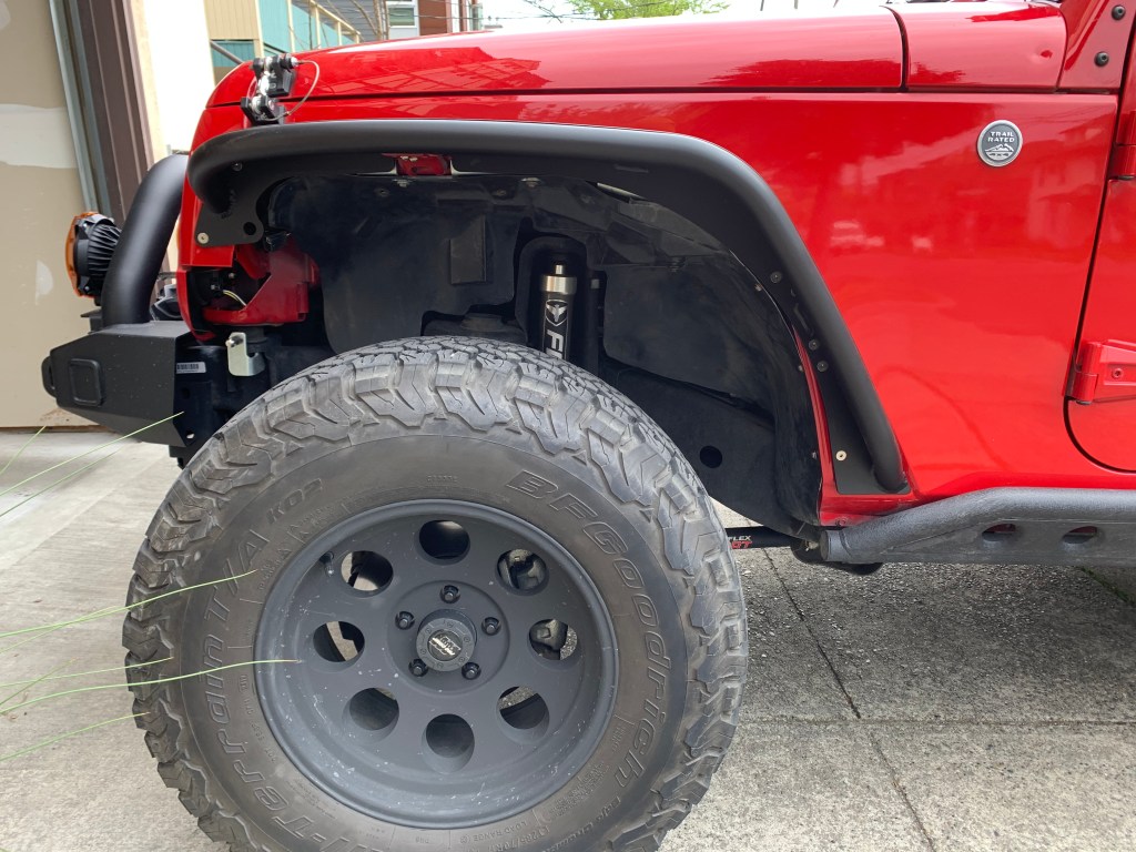 The best reason to choose Poison Spyder is that these flares are installed with an inner brace kit that is supplied. Many of the flares out there simply bolt on to the body sheetmetal which we all know is pretty flimsy on these Jeeps. Even if the flare is sturdy, contact with a rock or tree could deform the sheetmetal. The inner braces bypass the sheetmetal and transfer the forces to the inner Jeep structure.